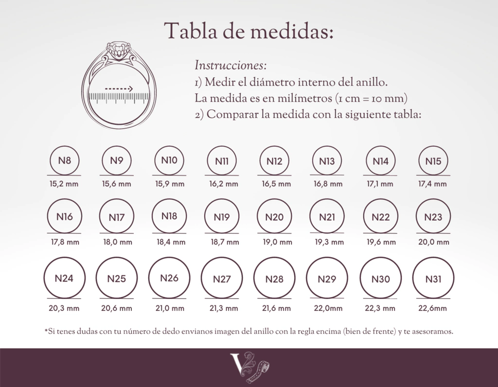 • Los anillos a partir del talle 25 tienen otro valor.