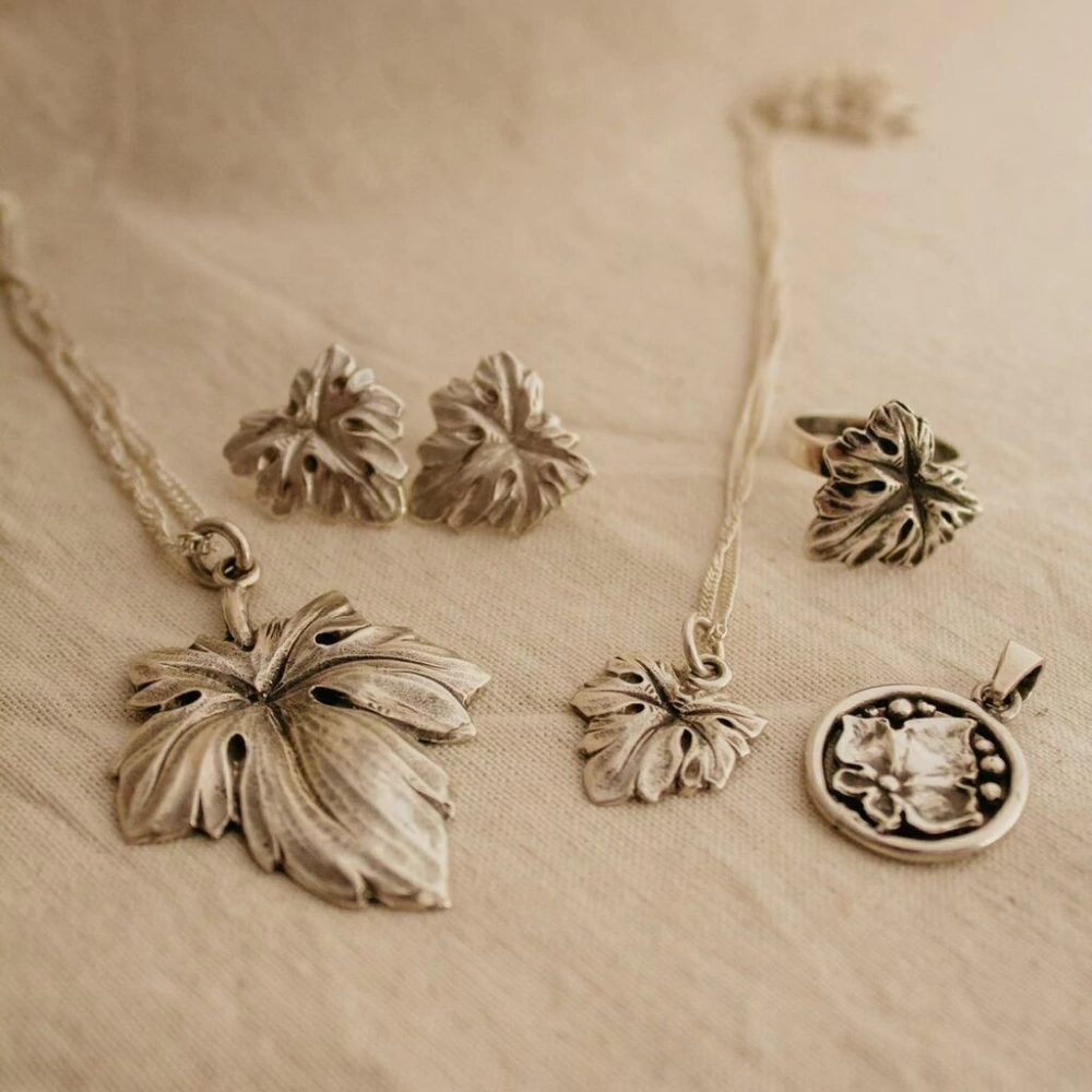 Aros de plata 925 cincelados a mano con diseño de hoja de parra.
