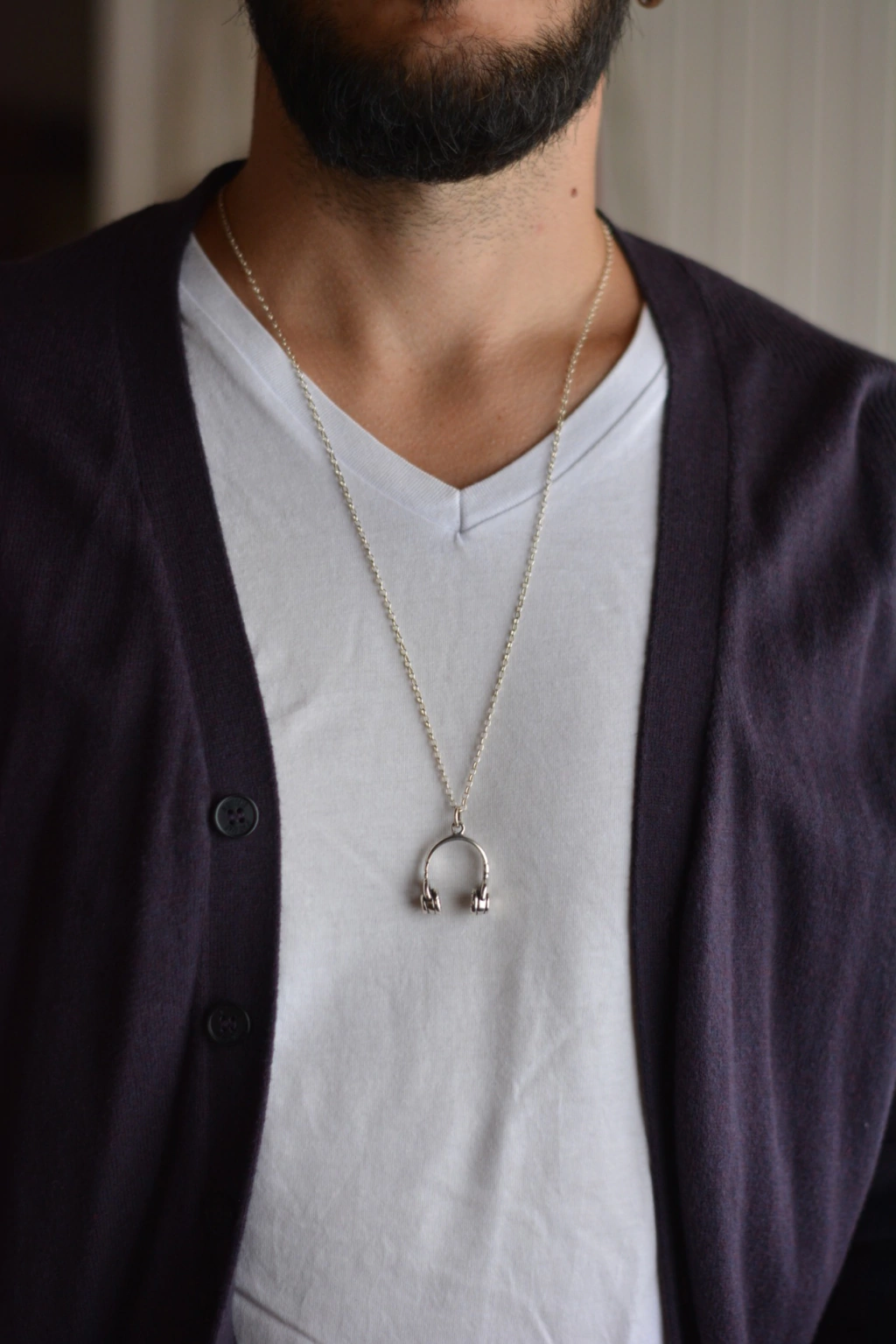 Colgante de plata 925 hecho a mano con diseño de auriculares.