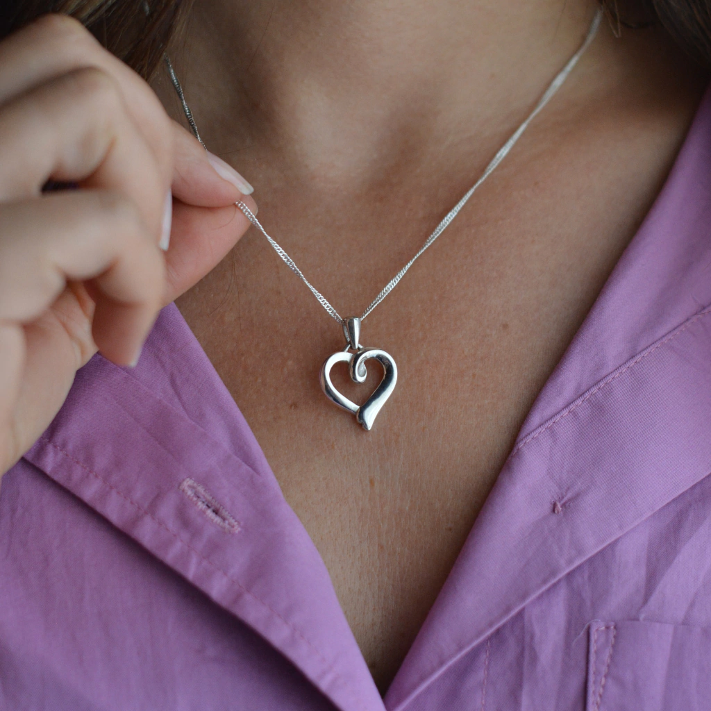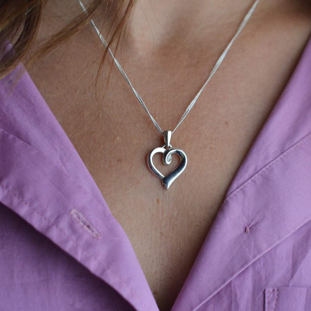 Colgante de plata 925 realizado a mano con diseño de corazón, con gancho móvil.