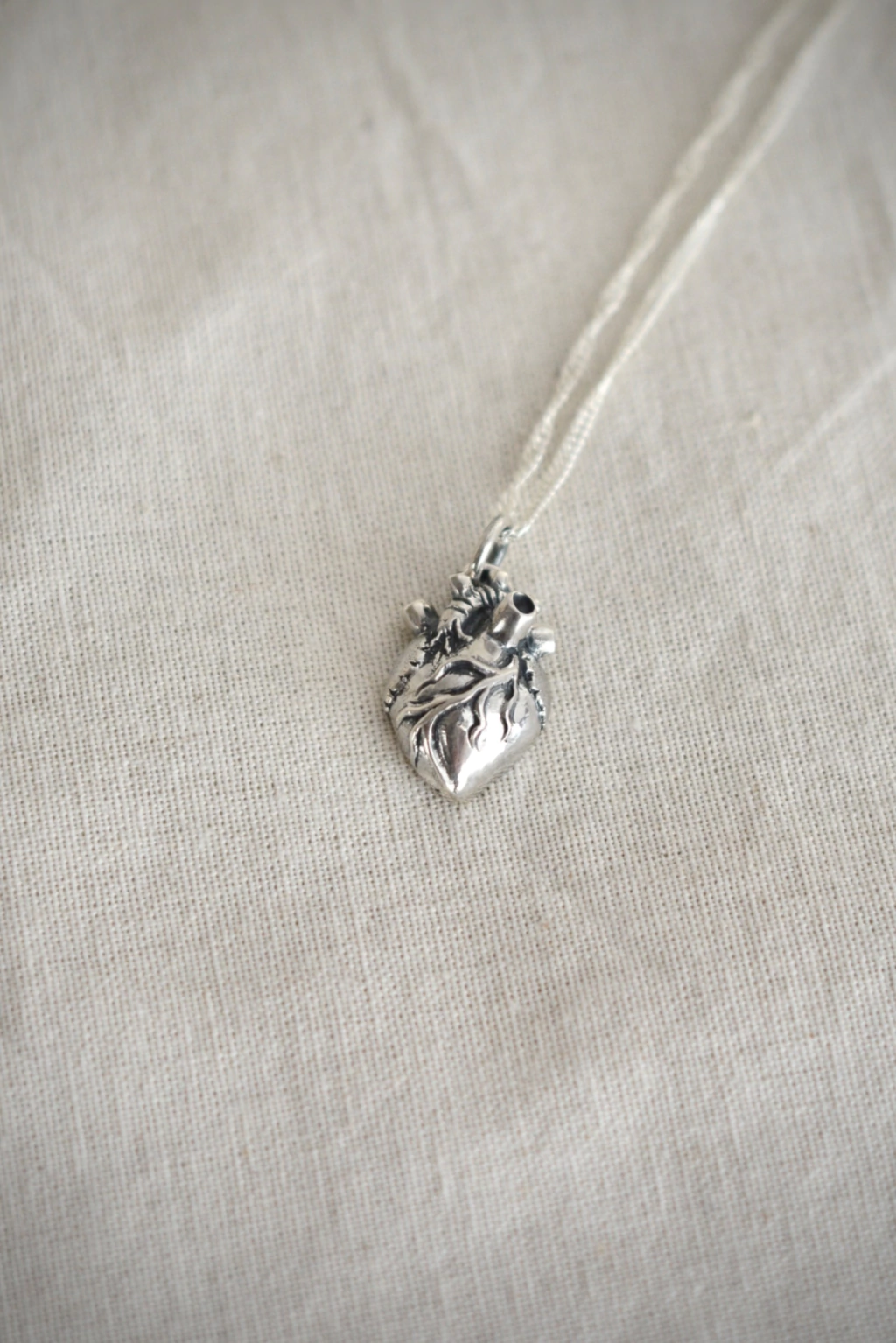 Colgante de plata 925 hecho a mano con diseño de medio corazón arteria. Esta pieza conserva la estética del clásico Corazón Arteria, pero con un formato plano y hueco en la parte posterior: una versión más liviana y accesible, sin perder calidad en los detalles.