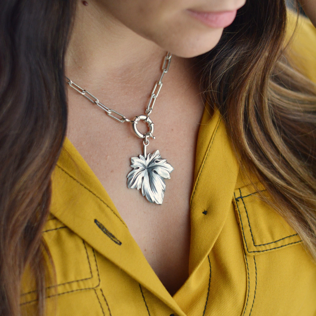 Colgante de plata 925 hecho a mano con diseño de hoja de parra.