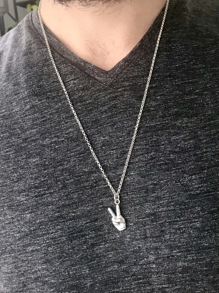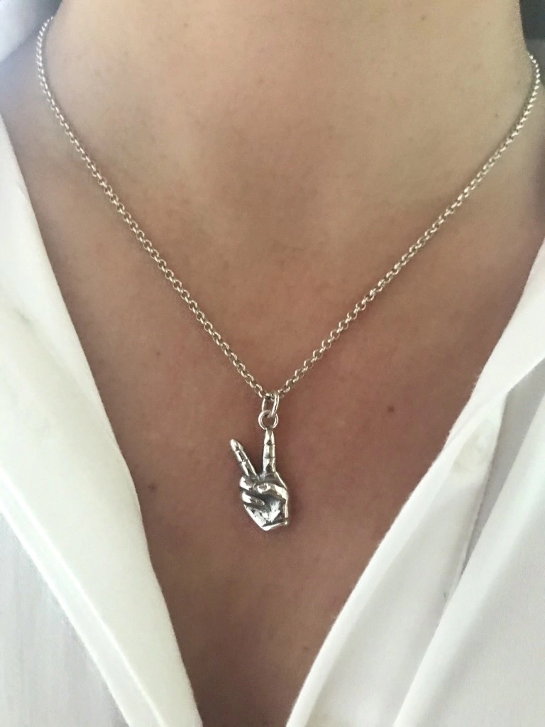 Colgante de plata 925 hecho a mano con diseño de mano en V.