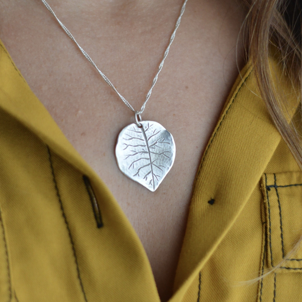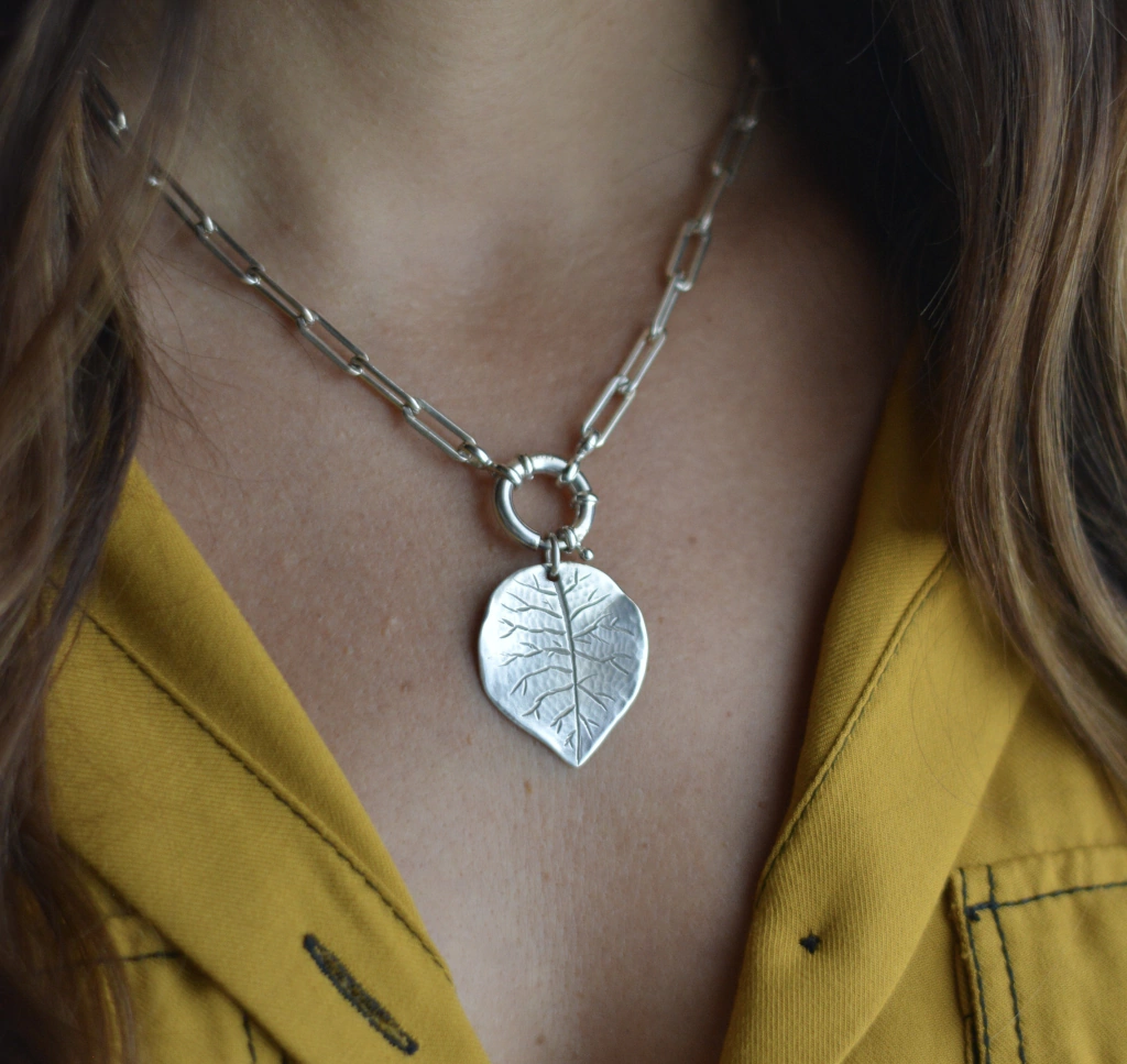 Colgante de plata 925 hecho a mano con diseño de hoja de Santa Rita.