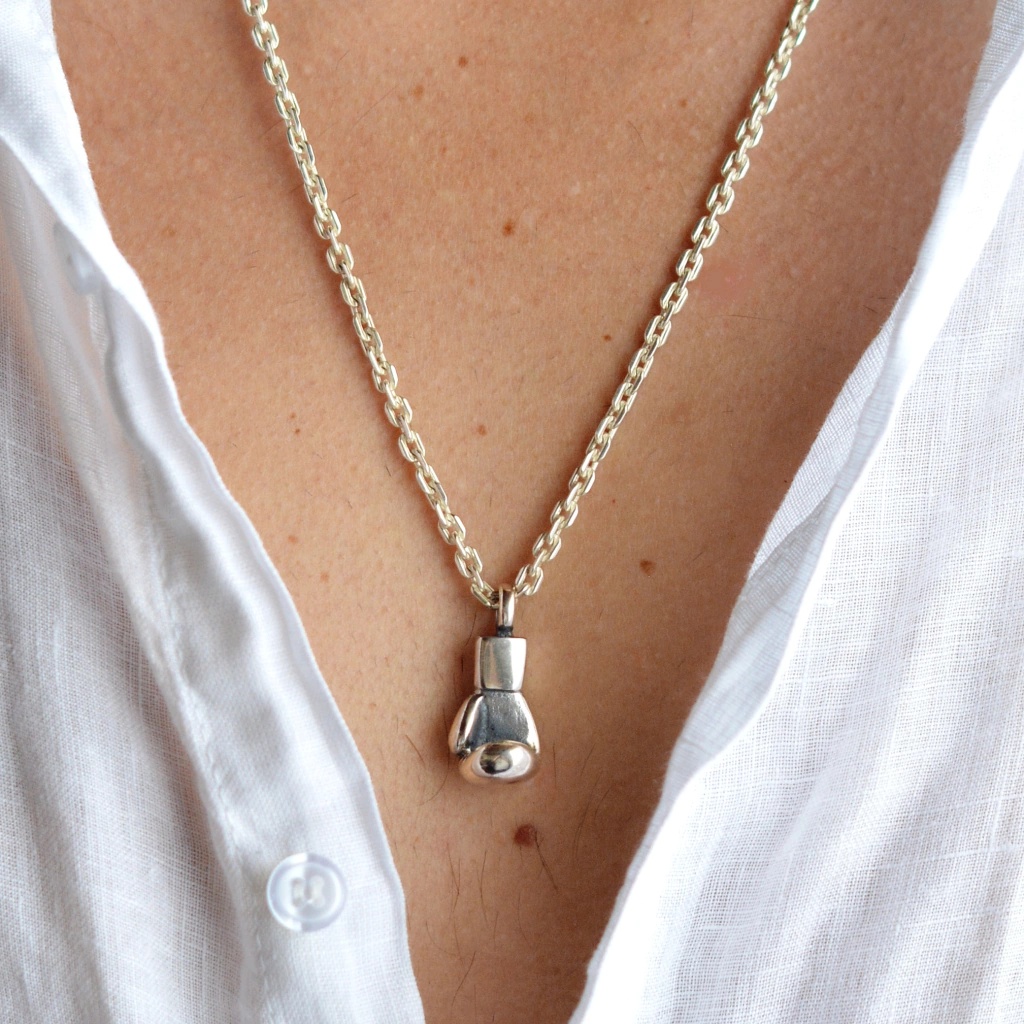 Colgante de plata 925 hecho a mano con diseño de guante de boxeo.