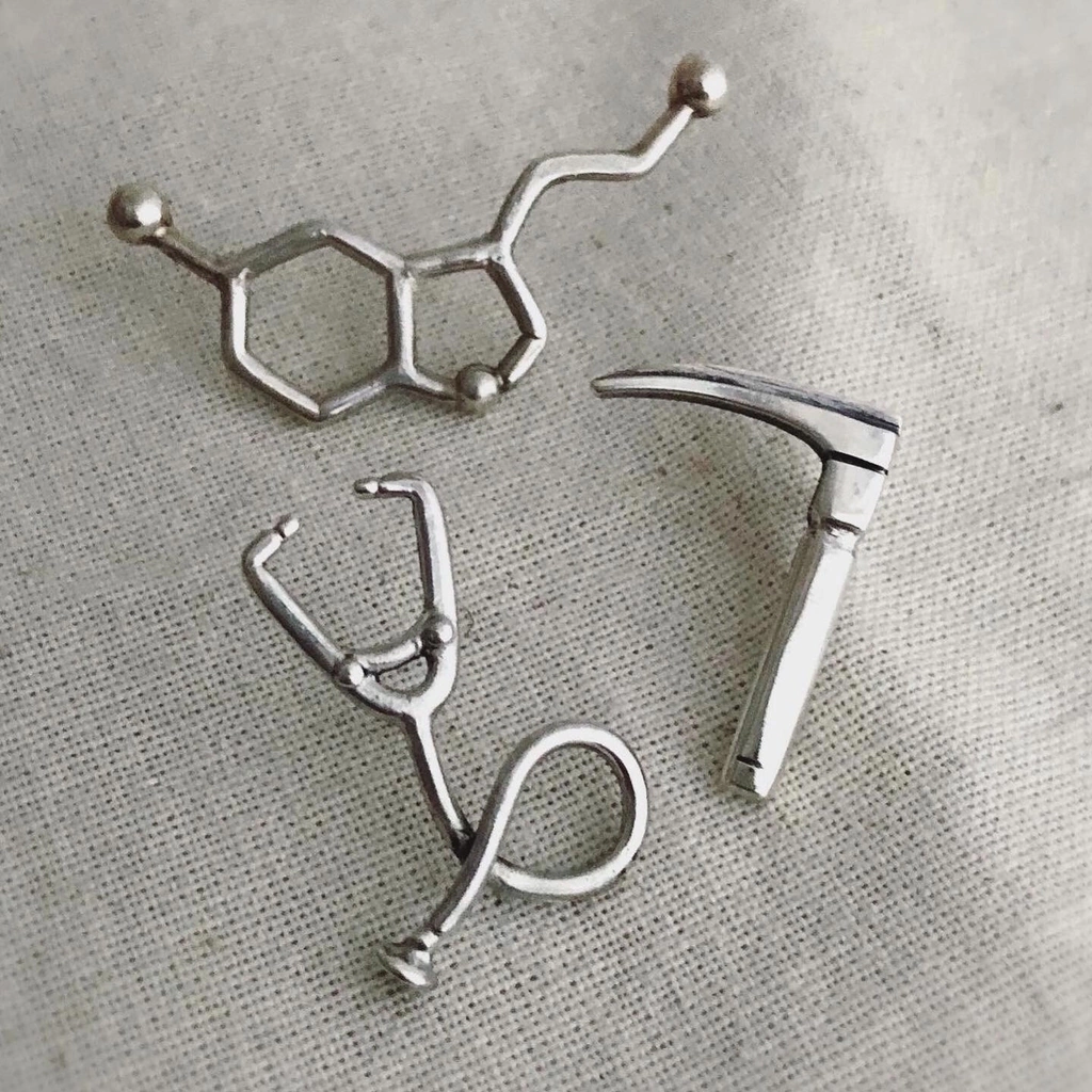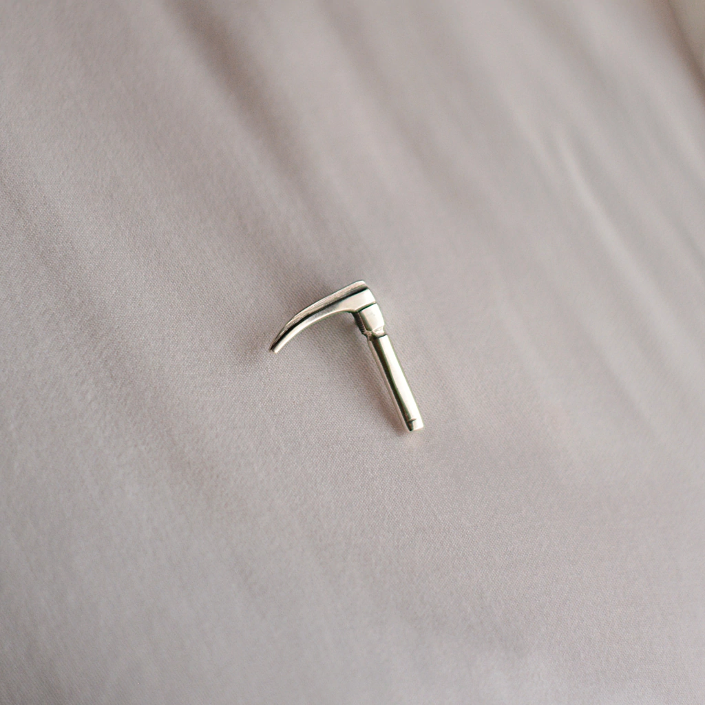 Pin de plata 925 realizado a mano con diseño de laringoscopio.