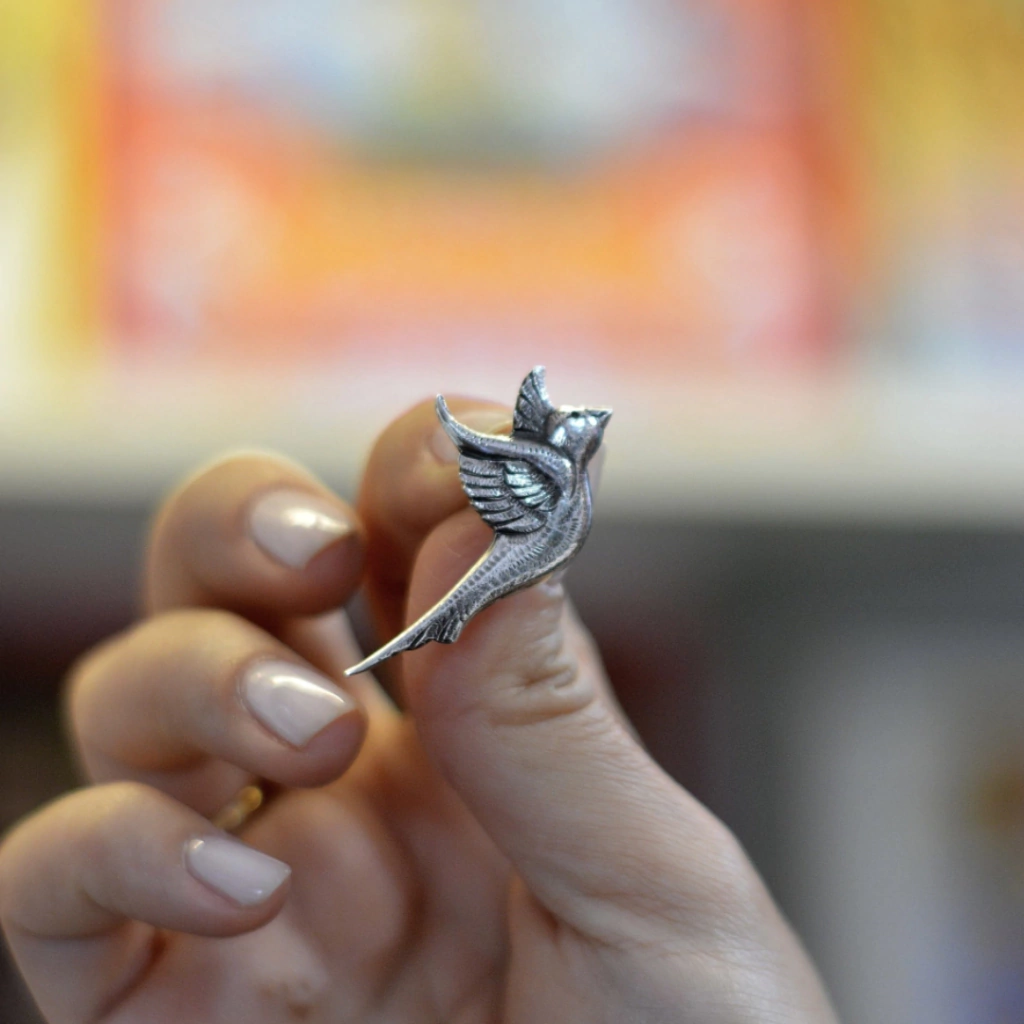 Este pin está realizado en conjunto con el maestro Alfredo Genovese, utilizando la técnica de cincelado en plata 925.